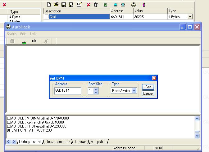 Wobei hier dringend zu beachten ist, dass es ein READ/WRITE -Breakpoint sein muss.