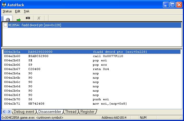 "add dwort ptr [esi+0x228],0x2710", da dieser Code dann immer und immer wieder ausgeführt