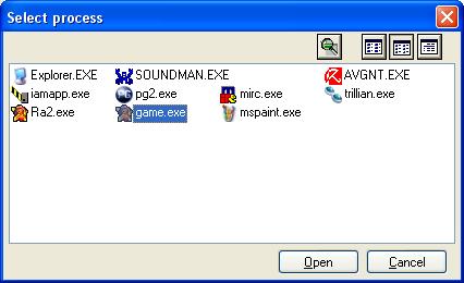Unter "Open Process" selektierst du jetzt das Spiel.